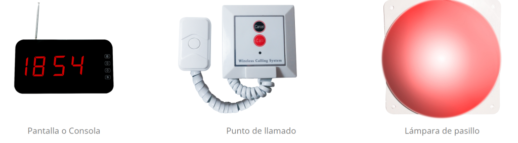 - Una consola o pantalla que se ubica en la estación de las enfermeras permitiendo la visualización simultanea de hasta tres números de habitación con sonido de alerta integrado.